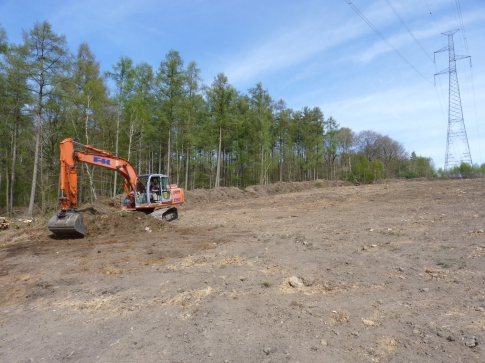 The first step was to uproot birch trees on the site. Remaining patches of old heathers were not touched. They show the interest for soil scraping, which consist in removing the topsoil few first centimeters to allow seed bank.