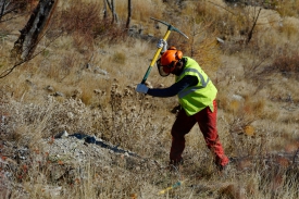 The planting conditions are particularly difficult on this site in the Haute Durance: very rocky soil, no land. Planters are forced to dig with a pickaxe and to bring in soil to increase the chances of regrowth of the plants.