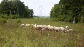 These sheep graze on vegetation under the powerline and gradually, by eating the leaves of trees and shrubs, will limit their growth and prevent electrical accident caused by trees. Tractors have therefore been replaced by a rustic but no less effective sheep flock. It is explained to the children by RTE and by the LIFE team.