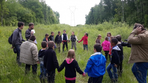 In this context, Friday, May 22nd, 22 students in primary school and 54 students from Dienville College Julien Regnier from Brienne-le-Château walked under the power line from the Ecomuseum of the Forêt d'Orient at Brienne-la-Vieille.