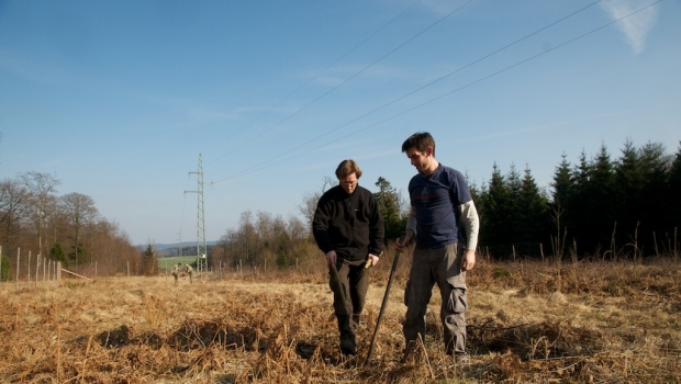 En novembre 2011, l'équipe a produit quelques milliers de boutures de saule à oreillettes et de noisetier. Tiges d'environ 40 cm de longueur et de la grosseur minimale d'un crayon, les boutures ont été installées immédiatement en création et enrichissement de lisière  dès après leur production. Une première visite de vérification en mars de cette année a permis d'établir la vigueur des fragments installés. Toujours verts, nous leur espérons vitalité de reprise ce printemps. Bien maitrisées, les bouturages d'automne ont laissé la place à une expérimentation ce printemps sur l'utilisation de boutures de noisetiers, et de sureaux. Sectionnées de la même façon que le noisetier, les fragments de sureaux doivent être prélevés sur des rameaux de plus d'un an, et présenter minimum 2 fois 2 yeux. Deux yeux doivent obligatoirement être à l'air libre lors de l'installation des boutures. Environ 1000 boutures ont été produites en 2 h par une équipe de 4 personnes. Ces boutures ont été installées dans trois enclos posés par le DNF dans un corridor HT de haute Ardenne. La structuration de la lisière et la répartition des essences s'est faite sur base de leur hauteur à maturité. A une distance située entre 20 et 25 m de la ligne, les noisetiers sont installés à proximité du massif forestier. Entre 15 et 20 m, le sureau noir est positionné, et entre 10 et 15 m de la ligne, nous finalisons avec le sureau rouge. L'aide d'une barre à mine est nécessaire pour l'installation et ce, en équipe de deux personnes. La première réalise un trou suffisamment profond, la seconde installe la bouture et tasse le substrat pour assurer un contact étroit avec la terre. Les clôtures installées protègeront les boutures d'un gibier très présent, et un travail de débroussaillage des semis et rejets de bouleaux limitera la concurrence lors de la reprise. Souhaitons secrètement un printemps pas trop sec facilitant ainsi la réussite de notre travail. Un suivi sera réalisé durant cette année de végétation pour évaluer les reprises des différentes essences et leur vitalité. Ces suivis et observations feront l'objet d'une actualité prochaine sur le site.
