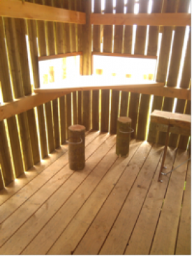 Réalisée en bois local par l'entreprise Etienne Lorent, cette construction s'intègre de par sa structure et ses abords dans l'environnement forestier qui l'entoure. Un accès pour les personnes à mobilité réduite a également été aménagé.