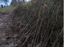 La journée a permis de préparer un peu moins de 430 plants de poiriers et 340 plants de pommiers. Deux équipes d'arracheurs se suivaient, l'habillage était automatiquement réalisé par une cinquième personne. En fin de journée la mise en jauge permettra d'avoir à disposition des bottes de plants prêtes dès que les conditions de plantations seront réunies. Deux journées supplémentaires devront permettre de valoriser complètement la production issue des semis de 2012, permettant de fournir environ 4.000 plants de pommiers sauvages. Ces plants permettront, soit de réaliser des plantations de conservation dans les couloirs de sécurité, soit d'enrichir de façon significative les lisières forestières associées au réseau haute tension avec des espèces de provenance garantie, augmentant la diversité biologique immédiatement et pour le long terme. La présence de fruitiers sauvages au sein de nos massifs forestiers rencontre de nombreux intérêts. Ils favorisent les pollinisateurs par l'abondance de floraison, ils augmentent l'attrait pour l'entomofaune en général, mais également offrent un apport intéressant pour la qualité de l'accueil du milieu pour l'avifaune et pour la grande faune.