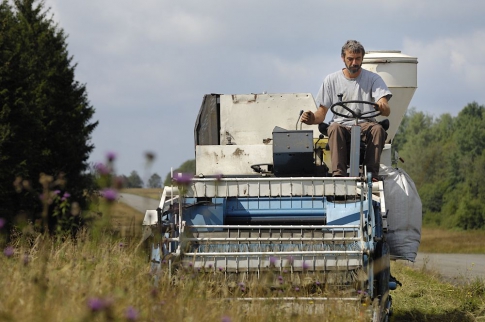 Les 9 et 10 août dernier, le soleil était de sortie et la petite moissonneuse a fauché et battu 2,4 hectares de ces précieuses prairies, 8 gros sacs de semences ont été récoltés, ce qui représente environ 250 kg de semences.