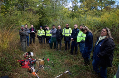 Après une partie théorique en salle, une formation pratique sur le terrain a permis de montrer sur site les aspects techniques de la restauration de lisières.