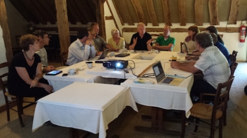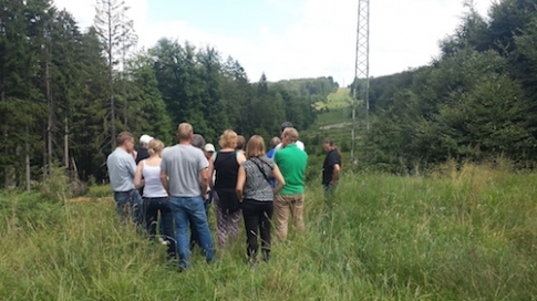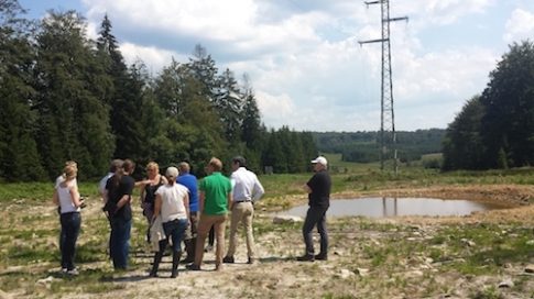 L'après-midi fut dédiée à une visite de terrain comprenant 3 arrêts pour montrer et expliquer les actions du LIFE ELIA entreprises en 2013. Une bonne opportunité pour voir des lisières plantées, des vergers, des mares, des clôtures pour le pâturage et des restaurations d'habitats naturels.