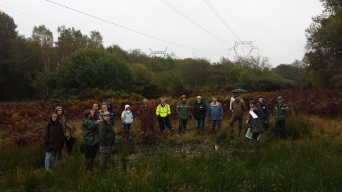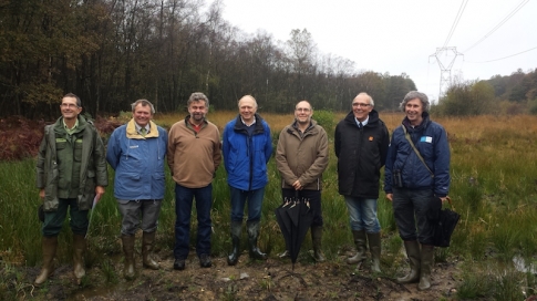 La journée s'est poursuivie avec la visite des restaurations finalisées sur la forêt syndicale des Mazures : creusement de mares, étrepage et restauration d'habitats humides.